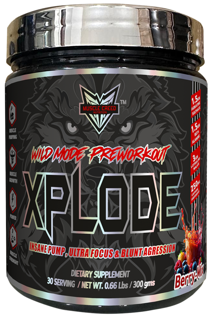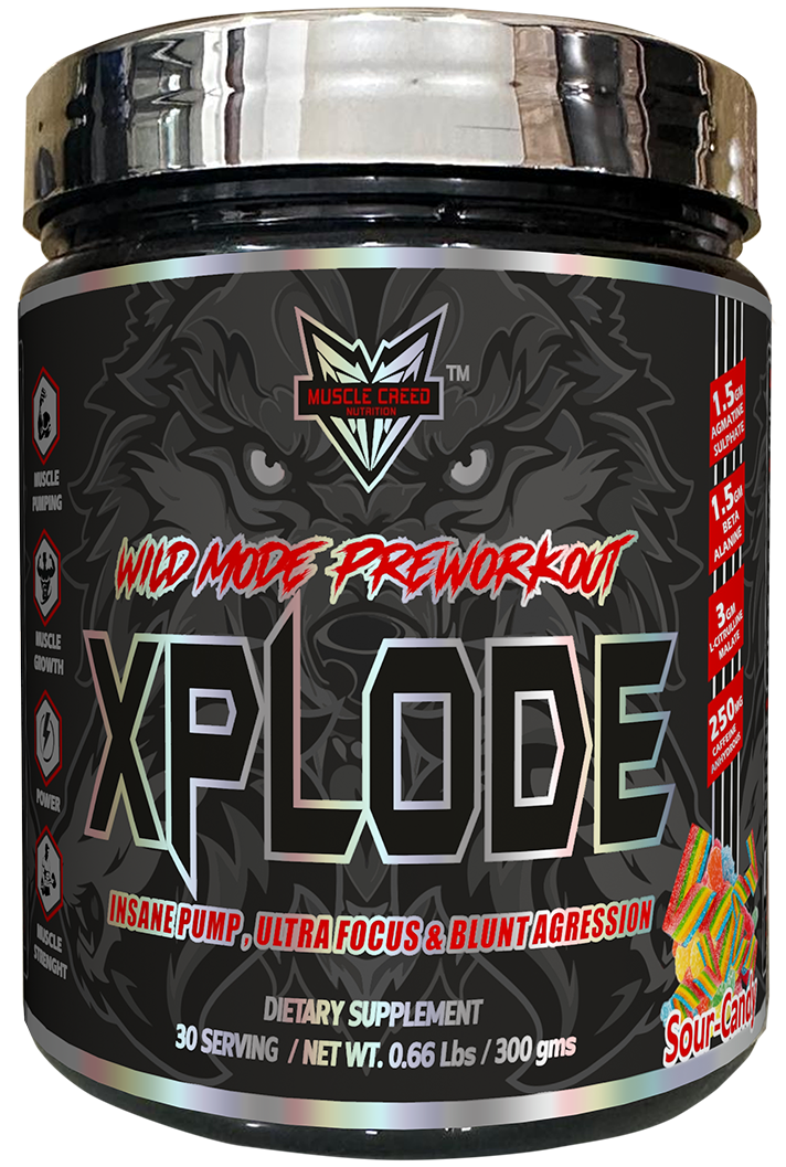 Xplode by Muscle-Creed Nutrition is an intense, skin-tearing pre-workout formula engineered for serious athletes and hardcore lifters who demand maximum performance from every rep. Designed to ignite explosive energy, razor-sharp focus, and insane muscle pumps, Xplode helps you push past your limits and dominate every session.
